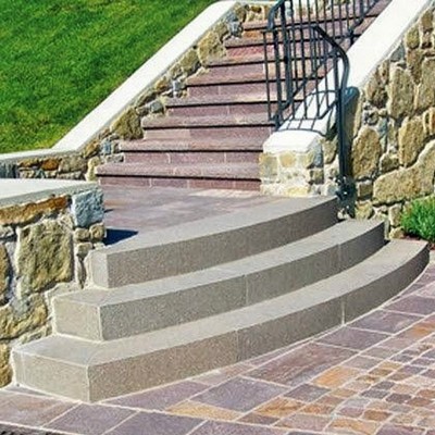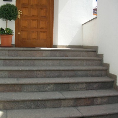 Neben einfachen, gespaltenen und nur abgelängten Blockstufen stellen wir auch jede andere Art von Bauelementen für Treppenanlagen aus Porphyr her.
